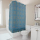This Shower curtain features a tribal ethnic geometric pattern. The colours are blue and copper brown. This design comes from an original tile. Look for the other items with this pattern.