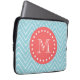 Blue and Coral Chevron with Custom Monogram Laptop Sleeve