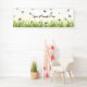 Blue and Crème Butterflies Charming Garden Scene B Banner