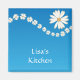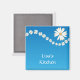 This pretty magnet has a blue background. A row of little daisies are at the top with a large daisy in the upper right corner. There is a space at the bottom for a custom name or message.