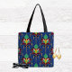 Blue and Gold Art Deco Floral Ornament Tote Bag