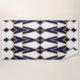 This beach towel has an art deco design of triangles and diamonds that look like bowties in blue and gold.