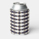 This can cooler has an art deco design of triangles and diamonds that look like bowties in blue and gold.