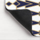 This mouse pad has an art deco design of triangles and diamonds that look like bowties in blue and gold.