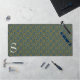 Decorative desk mat done in a blue and gold brocade design. Personalise the custom white one letter monogram to suit your needs. Great gift idea for her.