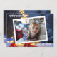 Personalised Christmas cards. Pretty blue Christmas tree photo holiday card.