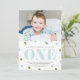 Blue and gold confetti first birthday party photo invitation