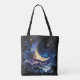 Elegant Crescent Moon: At the heart of the design, a stunning gold and blue crescent moon takes centre stage. Its graceful presence adds an element of elegance and magic to the tote bag, making it an ideal accessory for Halloween enthusiasts.