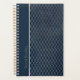 Handsome monthly planner done in a navy blue and gold tone diamond pattern. A navy blue band, down the left front of the planner has a gold edge accent and custom text ready to personalise. Great for work, home or school.