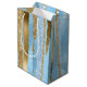 Modern Christmas gift bag done in graphics of a chic sky blue and gold tone foil and glitter striped pattern. Customise to add any text you want.