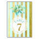 Gold and Blue Flowers Striped Wedding Table Number Card