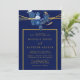 Design features a printed coloured floral element in shades of navy, blue and gold. Navy and blue canvas textures with faux gold butterfly and peony blooms with gold calligraphy script or type writing. Great for your wedding celebrations!