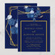 Blue and Gold Geometric Floral Wedding Invitation