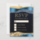 Blue and Gold Glam Tears Bokeh Wedding RSVP Card