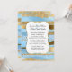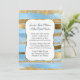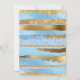 Glamourous wedding invitation, with graphics of a glitzy gold and blue foil and glitter looking striped background. A gold edged white decorative text area, on the front of the invitation has custom text ready to personalise, for your special day. Matching wedding products are available.