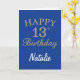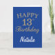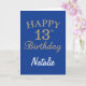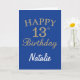 Blue and Gold Glitter 13th Birthday Card with personalised name. For further customisation, please click the "Customise it" button and use our design tool to modify this template.
