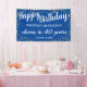 Personalised adult birthday party banner featuring a deep blue background that can be changed to any colour, a scattering of party gold confetti glitter, and a cheers to (age) years celebration template that is easy to personalise.