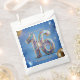 Celebrate a milestone sixteenth birthday in glamorous style with these elegant party favor bags. Featuring a dazzling 3D glitter number sixteen paired with festive blue and gold balloons, this chic design is perfect for a modern Sweet 16 celebration. The rich royal blue background and sparkly metallic accents create a luxurious vibe, making it a beautiful way to say "thank you" to your party guests. Easily edit the template with the birthday girl's name to match your blue and gold party decorations perfectly.