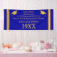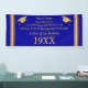 Blue and Gold Graduation Banners or Class Reunion Banners PERSONALIZED with Your COLORS and TEXT or Delete. You, or Designer Linda: 239-949-9090 can CHANGE the Blue and Gold background and text to your School Colours. Designer Linda can CHANGE the Gold Graduation Caps and Border Sports Lines Trim to any colours.