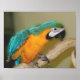 Young blue and gold macaw parrot posing on a tree branch bird poster. Animal photography by Susan.