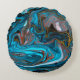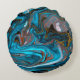 Blue and gold marbling pattern. Golden marble liqu Round Cushion