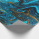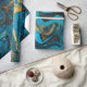 Blue and gold marbling pattern. Golden marble liqu Wrapping Paper