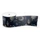 Illuminate your celebrations with our captivating design! Against a deep, dark blue backdrop, this enchanting artwork features golden moons and lanterns, creating a mesmerising fusion of celestial elegance and cultural charm.
