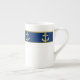 Stylish white china mug, with a golden edged blue band, around the top, with graphics of golden anchors. Customise to add any text you want.