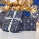 Blue and gold nautical pattern wrapping paper featuring tridents in a lattice pattern.