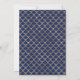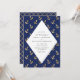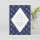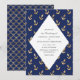 Wedding invitation featuring a faux gold foil anchor pattern against a navy blue background and scales on the reverse.