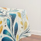 Immerse yourself in the timeless elegance of this paisley-inspired tablecloth, featuring intricate blue and gold leaves gracefully arranged against a crisp white background. This design harmoniously blends vintage charm with rustic sophistication, evoking a sense of classic artistry.