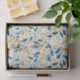 Immerse yourself in the timeless elegance of this paisley-inspired tissue paper, featuring intricate blue and gold leaves gracefully arranged against a crisp white background. This design harmoniously blends vintage charm with rustic sophistication, evoking a sense of classic artistry.