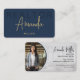 Crafted with a keen eye for design and attention to detail, this business card template stands out from the crowd with its striking navy blue backdrop accented by luxurious gold accents. The minimalist layout exudes professionalism, while the sleek calligraphy branding adds a touch of personalised charm.