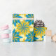 Blue and Gold Starburst Flowers Wrapping Paper