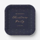 Paper plate featuring a blue and gold striped wallpaper background with an elegant script and serif font in which your personalised information is written. Check out our store for more items from this collection.