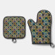 Blue and Gold Sunflower Batik Oven Mitt & Pot Holder Set