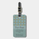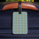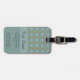 This luggage tag features a soft flowery tiled pattern in blue and gold by artist Jayne Wilson.