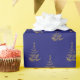 A dark blue background with gold stylised trees presents a classic yet modern look for your holiday packages.