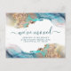 Blue And Gold Watercolor Ink Moving Announcement. Elegant alcohol ink hand lettered style calligraphy script professional design. Perfect for makeup artists, hair stylists, cosmetologists, and more!