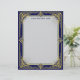 Fabulous art deco stationery with an ornate frame in gold on a navy blue background, with a blue-gray center. Elegant, timeless, beautiful, and perfect for correspondence, invitations, newsletters, and more.