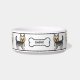 Destei's original cartoon illustration of a cute blue and gold colour Yorkshire Terrier / Yorkie breed dog. The dog design is placed multiple times on the bowl. There is also a dog bone shape with a personalizable text area for a name. The top and bottom have black lines that act as borders for a finishing touch for the design.