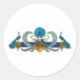 Blue and golden peacocks and wreaths classic round sticker