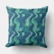 Blue and green abstract Waves Cushion