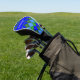 Personalised blue and green argyle golf putter cover. Eclectic Grandpa and Jazz Revival are looks both trending in 2024 and argyle fits perfectly into that stylish trend. Blue and green argyle design, blending a classic preppy diamond pattern with lively shades of blue and green. Personalised gift for your mum, dad, sister, brother, cousin, uncle, aunt, grandpa, nana, golf buddy, office mate.