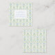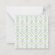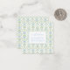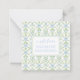 This personalised square note card features a lattice pattern of green vines and blue bows and ribbons on white. Personalise the front with your choice of name and special text in matching blue and white. Perfect for gift tags on party favours.