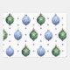 Blue and Green Christmas Ornaments on White Wrapping Paper Sheet