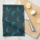 Blue and Green Crescent Moons Pattern Halloween Tea Towel
