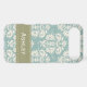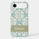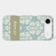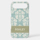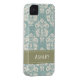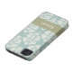 This custom elegant vintage blue, cream and mossy green damask iPhone 4 and 4s Case-Mate Barely There case and cover can be personalised with your name on the green stitched ribbon design. Accessorise your favourite gadget with a floral feminine and girly baroque meets French Country style case that looks sophisticated, luxurious and upscale. Designed by Chrissy H. Studios, LLC. All Rights Reserved.