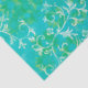 A damask pattern of green and white colours on blue decorates this tissue paper.