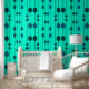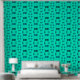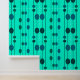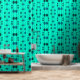 Blue and green dots on mint green wallpaper